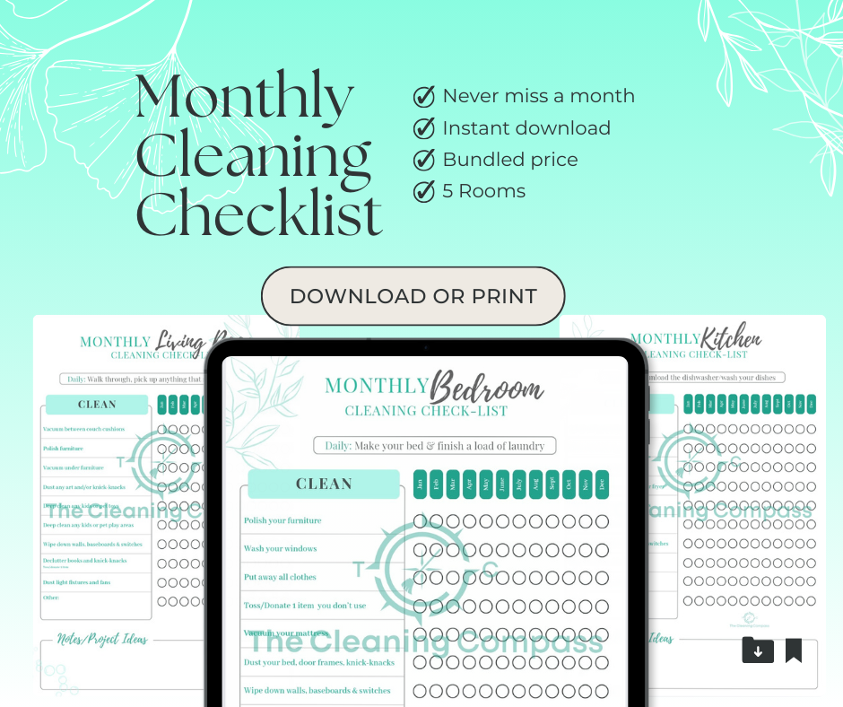 Whether you’re a seasoned cleaner, or just starting your cleaning journey, let the Cleaning Compass Monthly checklist guide your way. This checklist will help you create a serene and clean space month by month.